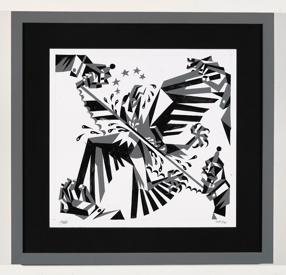 Ki Smith Gallery proudly presents Bockhaus’s Anti-Christmas Special, the gallery’s fourth solo exhibition of work by Ryan Bock. Consisting of a series of works on paper created during the early stages of the COVID-19 pandemic, this body materializes anti-establishment philosophy in black, white, and gray.